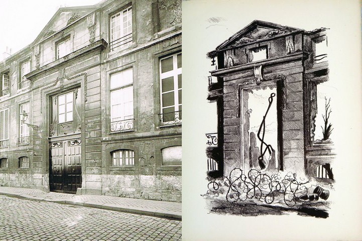 Au passage, nous pouvons remarquer que l'Hôtel de Tilly-Blaru, au N° 38, est entièrement effondré derrière la façade.