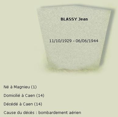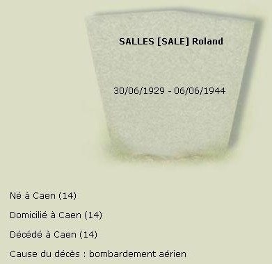 Les premières bombes tombées sur CAEN avaient fait chez nous deux morts et sept blessés. On les transporta tous à l'Hospice Saint-Louis et aussitôt on se remit à aménager les tranchées creusées au fond du jardin en 1940. Nous nous y abritâmes la nuit du 6 au 7 juin qui fut épouvantable pour les quartiers du centre de la ville. Une immense lueur montant du quartier Saint-Jean éclairait sinistrement notre abri.