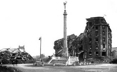 La colonne a reçu bien des coups mais elle a tenu. La statue dorée est intacte. Mais, tout autour de la place, c'est la désolation. Il n'y a pas que la Kommandantur qui se soit écroulée : tous les autres bâtiments ont subi le même sort. Ainsi seule la Victoire a survécu : la Victoire est là.
