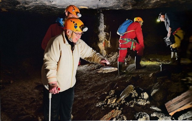 Harnachée, encadrée, filmée, photographiée, Yvette s'avance vers le puits. Elle saisit l'échelle et s'engage dans la descente de 15 mètres. Comme pour symboliser le temps qui remonte, les parois de calcaire défilent sous ses yeux. Quelques secondes plus tard, elle atteint le fond, entre Yolande et Gabriel qui lui prennent les mains.