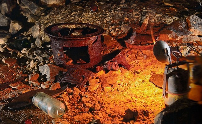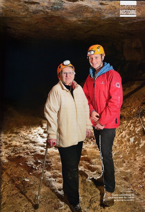 Il fait une douzaine de degrés et les odeurs minérales la replongent aussitôt dans le passé. Progressivement, ses yeux s'habituent à l'obscurité et lui dévoilent les murs bétonnés des anciennes caves de la brasserie. Quelques premiers pas sur un sol couvert d'une boue liquide les conduisent dans la carrière proprement dite. Malgré la disparition du repère lumineux que constituait l'ancienne descenderie, Yvette s’oriente rapidement. De part et d'autre du chemin principal, sur des remblais nivelés par des semaines d'occupation, des objets rouillés, des débris de vaisselle cassée, des chaussures abandonnées reposent sans ordre apparent. Elle retrouve l'emplacement de sa famille et murmure : "Ça n’a pas bougé, c’était comme ça, déjà."
