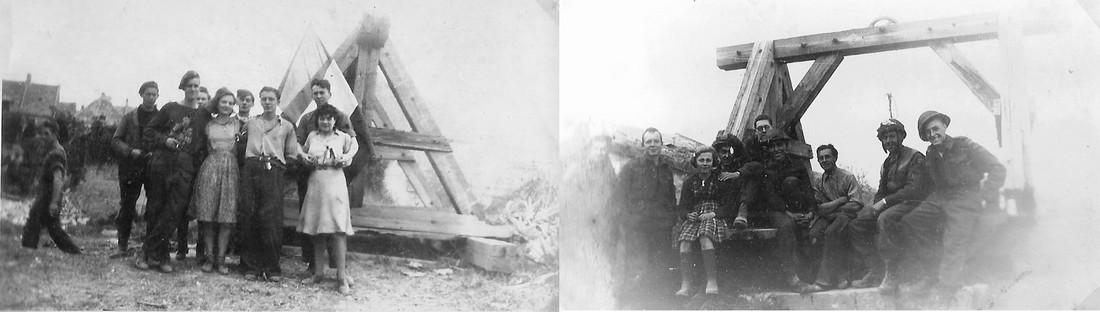 Source: Collection Mme Louisette Berlinguez-Gimonet. Tête de puits de la carrière de la Maladrerie, à Caen, vue de, face et de profil, prise après la Libération, juillet-août 1944.