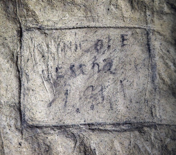 En 1944, Nicole a gravé ce graffiti sur les murs des carrières de la Maladrerie. Il est encore visible aujourd'hui.