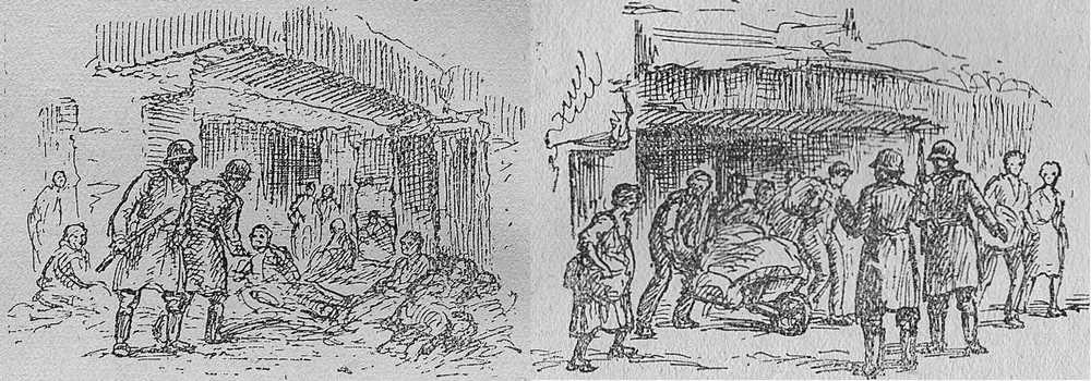 Deux dessins illustrant le témoignage (pages 71 et 72)