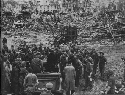 Note de MLQ: V1) - et Mr Churchill sur les ruines de la ville.