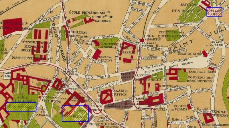Localisation de la place Blot, du lycée Malherbe et du Bon-Sauveur