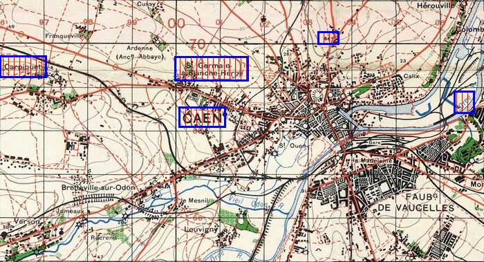 Caen se retrouve en première ligne et nos Alliés n'en occupent que la rive gauche. Les Allemands ont fait sauter les derniers ponts qui restaient. Les quartiers de Vaucelles et de Sainte-Thérèse restent aux mains de l'ennemi. Toute la nuit nous entendons le bruit des mitrailleuses du côté de La Prairie.