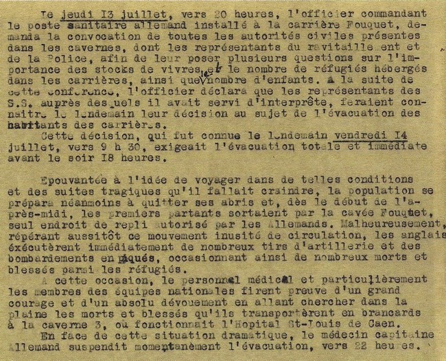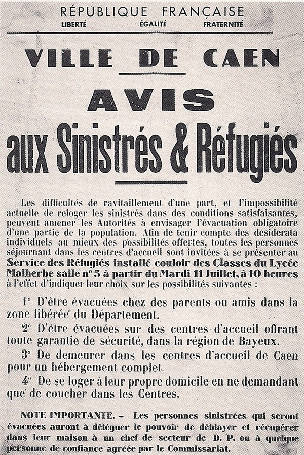 « Le général commandant la place de Caen nous a transmis un avis d’évacuation totale de la ville de Caen, pour éviter à la population les graves dangers que comportent les opérations militaires.