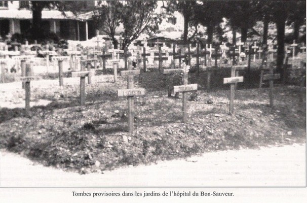 Un dans les jardins du Bon Sauveur (une fosse commune dans la cour du pavillon Notre Dame des Anges avec 245 morts)