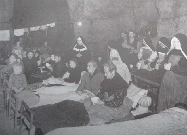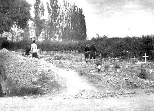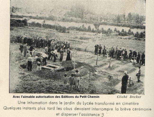Au Centre d’Accueil des Petites Sœurs des Pauvres les victimes des bombardements sont inhumés deux par deux au cimetière de Vaucelles juste en face.
