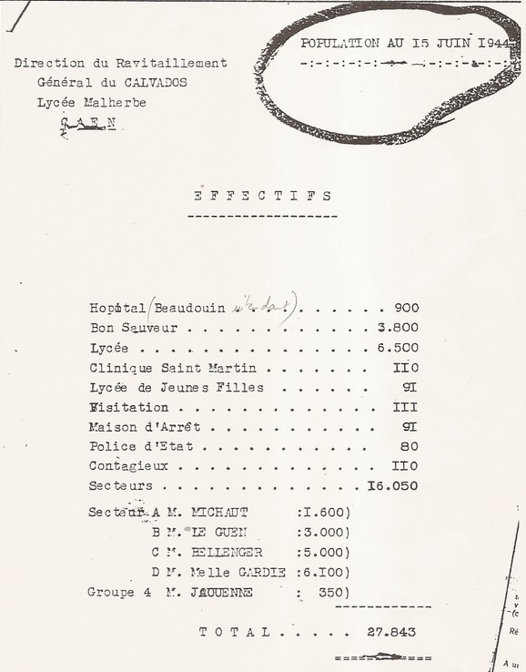 On estime qu’à cette date il reste environ 18 000 personnes à Caen sur une population de 60 000 au début de la guerre.