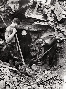 Prière sur les ruines d'Anna Quinquaud, rue de la Délivrande (que les Caennais appellent le Calvaire Saint-Pierre)