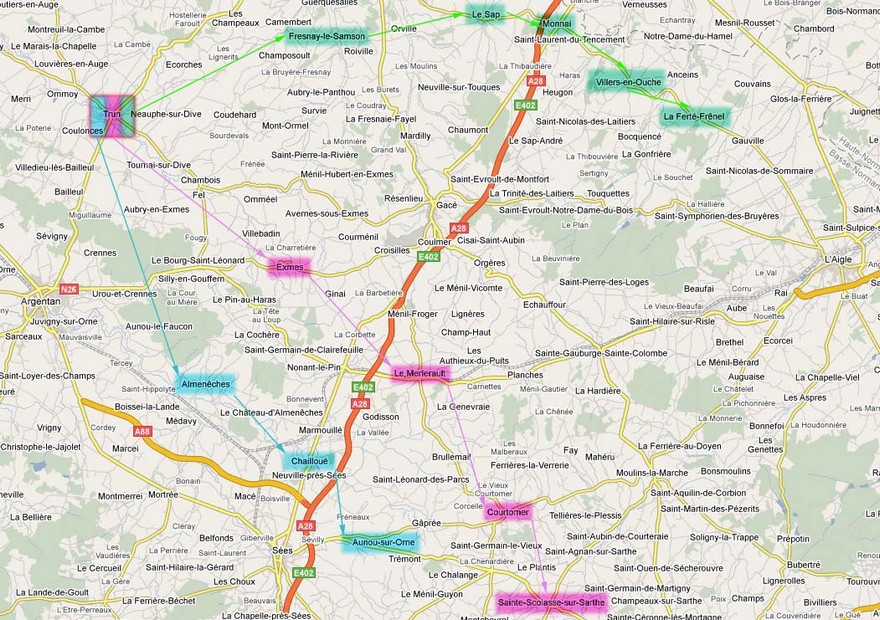 -Exmes, Le Merlerault, Courtomer, Sainte-Scolasse-sur-Sarthe.