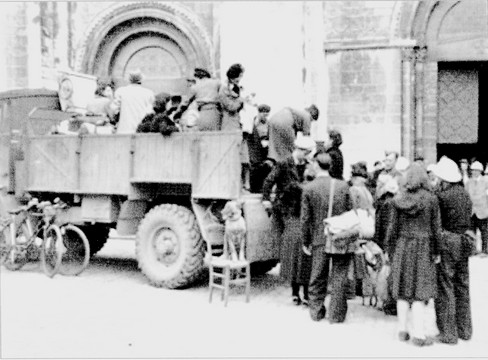 Fin juin, 5 ou 6 camions du Groupe de Transport organisé par les Ponts et Chaussées sont affectés au transport des évacués. Ils les conduisent jusqu’à Saint-Sylvain sur la route de l’exode. Au-delà, si leur état de santé ne leur permet pas de poursuivre à pied, les évacués sont transportés par des relais hippomobiles organisés par les paysans. En outre, un camion part chaque après-midi du Lycée Malherbe et suit la route de l’exil jusqu’à Trun. Il a pour mission de relever les traînards. Il revient à Caen dans la matinée du lendemain.