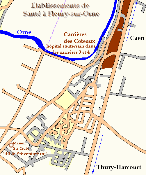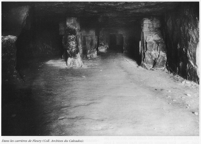 Dans les carrières de Fleury-sur-Orne les premiers morts de l’hôpital des Coteaux sont enterrés au cimetière communal ; les autres, en raison des bombardements, dans le fond d’une galerie. Il y eût 47 décès. Les corps sont relevés après les combats pour être inhumés dans le cimetière municipal.