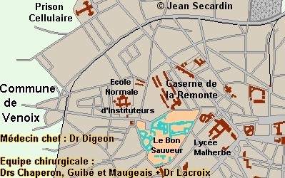rue Caponière, médecin chef docteur Digeon, trois équipes chirurgicales des docteurs Chaperon, Guibé et Maugeais (auxquels viendra se joindre le 6 juin, le docteur Lacroix, arrivé de Paris 48 heures plus tôt).