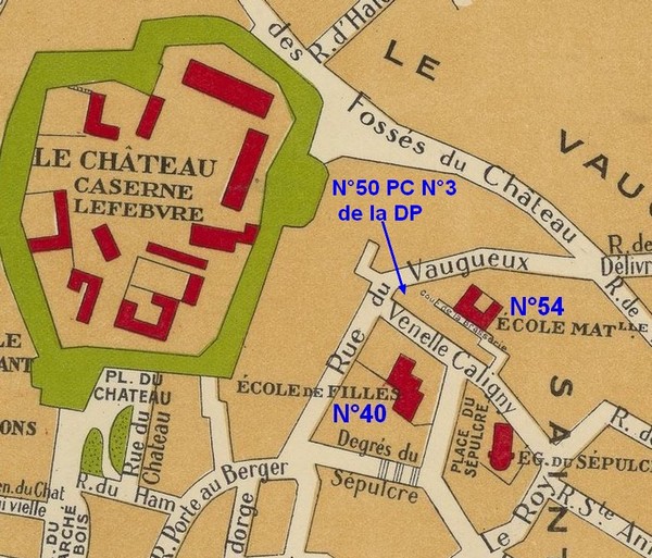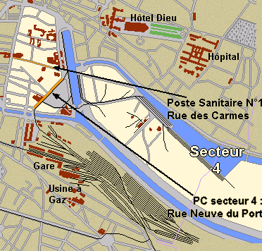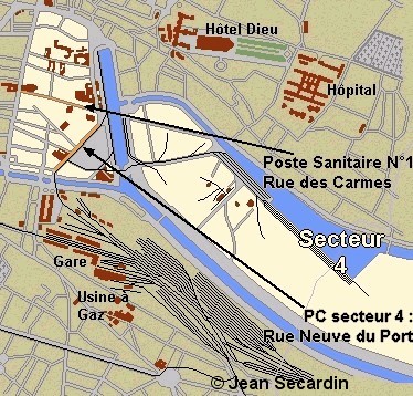 - le secteur n° 1 avec le PC rue Gabriel-Dupont (ou rue René Perrotte) dans le garage de M. Benassar