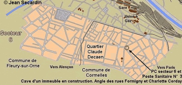 -Le secteur n° 6 avec le PC dans les caves d'un immeuble en construction à l'angle de la rue de Formigny et de l'avenue Charlotte Corday (Sainte-Thérèse)
