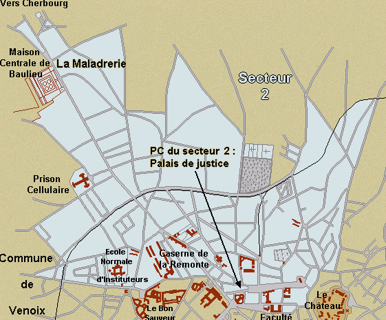 Etait coincé entre les secteurs 1 et 3. Il allait de l’Orne au boulevard des Alliés et de la rue Saint-Jean au port.